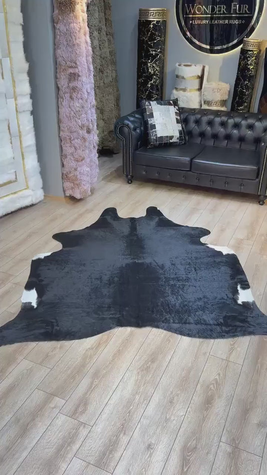 Unique Natural Black Cowskin Decor Rug, Speckled Cow hide carpet