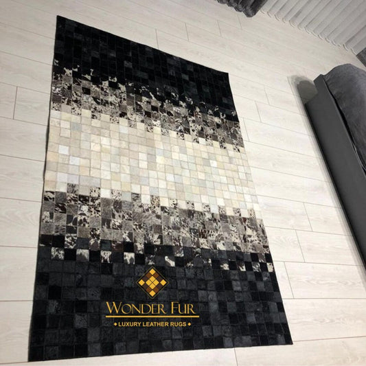 Modern Patchwork Black And White Real Cowhide Office 3x5 Leather Rug