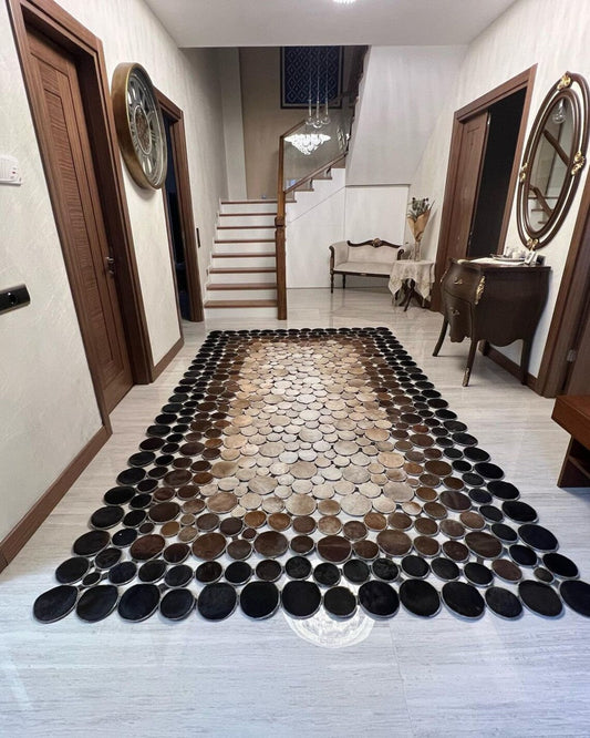 Modern Home Decor Black And Beige Real Cowhide Corridor Handmade Rug