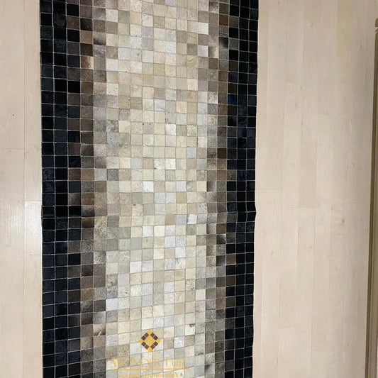Black, Gray and White Patchwork Rug, Genuine Cowhide Runner Rug, Runner Rug for Hallway, Home Decoration Rug