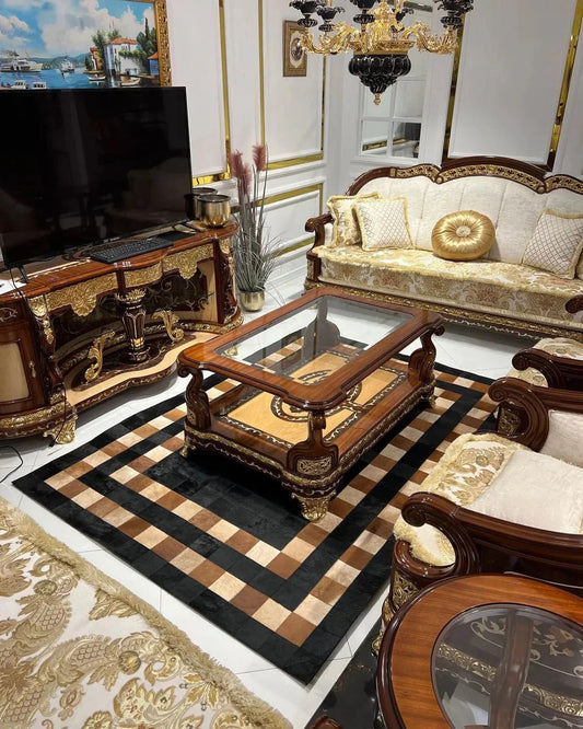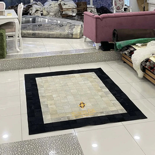 100% Genuine Natural Cowhide Patchwork Rug for Living Room Decor, Modern Living Room Rug