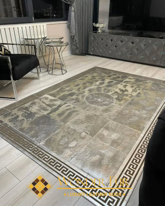 Luxury Natural Cowhide Area Rug for Kitchen, Unique Design Genuine Cow Leather Carpet
