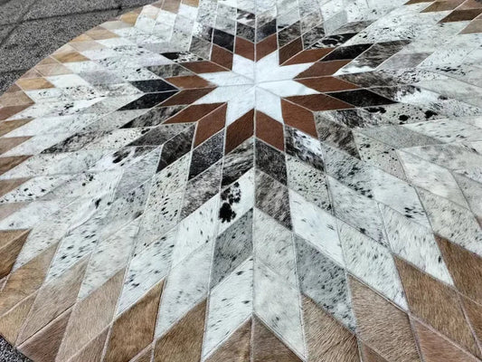High Quality Symmetrical Cowhide Area Rug, Genuine Leather Carpet, Round Cowhide Rug