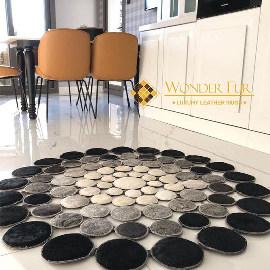 High Quality Natural Leather Cowhide Rug, Handmade Cow Skin Round Carpet, Non Slip Rug