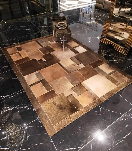Luxury Handcrafted Cowhide Patchwork Rug, Natural Leather Cowhide Area 6x9 Rug