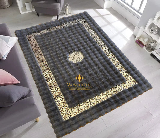 Luxury Modern Black And Gold Faux Fur Living Room Rug , Handmade Rug