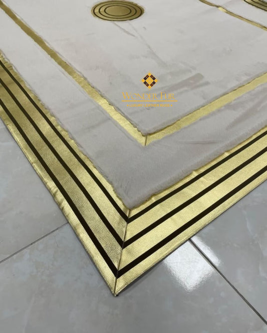 Unique Handmade Soft White And Gold Faux Fur Bedroom Area Fluffy Rug