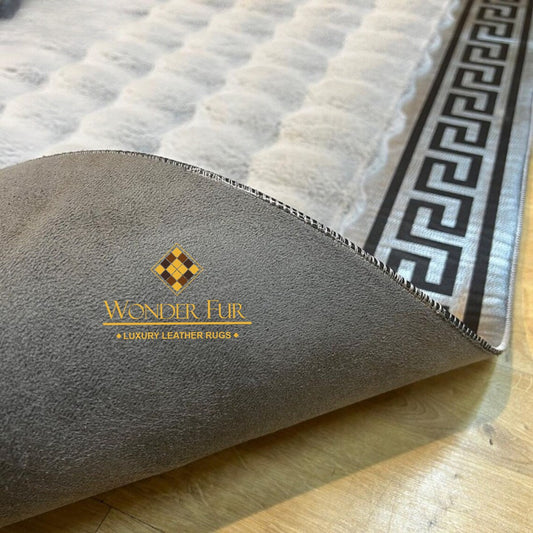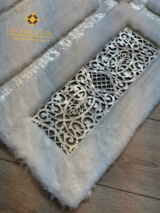Unique Soft White Silver Faux Fur Large Living Room Rug , Handmade Rug