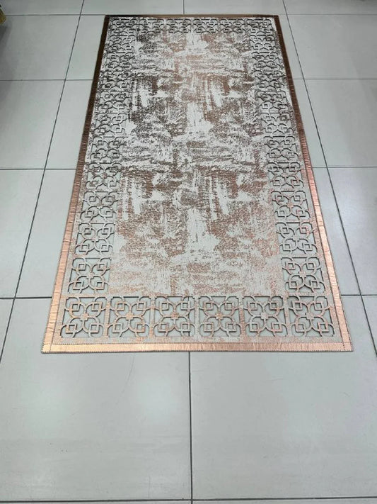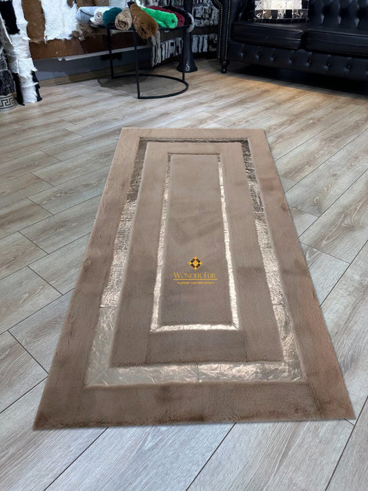 Luxury Handmade Rose Gold Faux Leather Area Living Room Rug