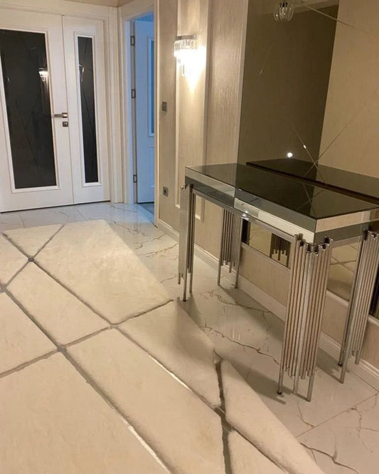 Shaggy Fluffy Handmade White And Gold Faux Fur Living Room Soft Carpet