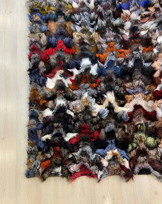 Handmade Natural Multicolor Genuine Fluffy Fox Fur Area 8 x 10 Rug for Child Room