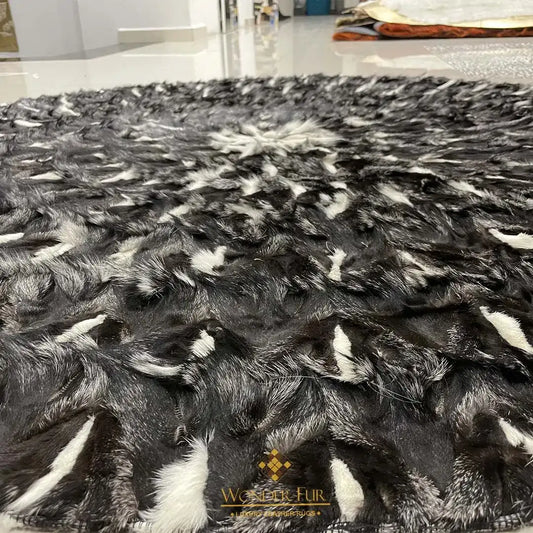 Handmade Elegant White And Gray Real Fox Fur Living Room Rug