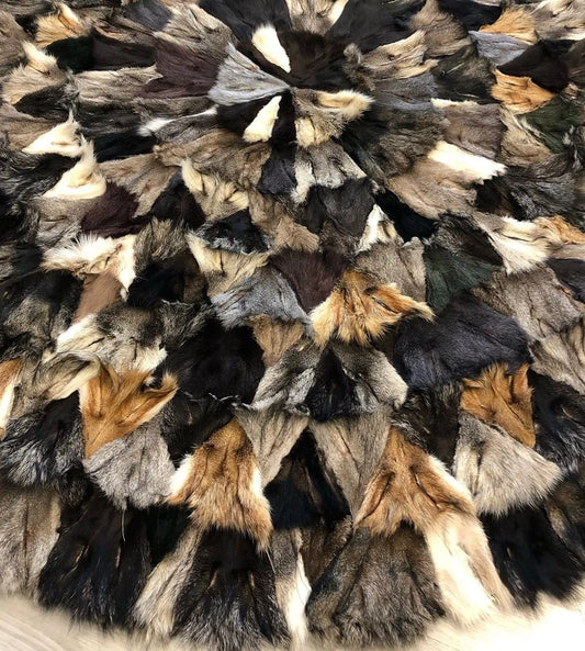 Handmade 100% Natural, Mixed Color Round Fox Fur Patchwork Rug for Decoration