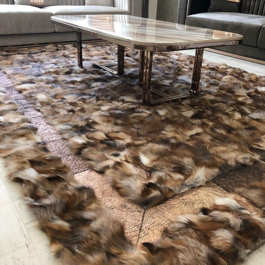 Luxury Golden Brown 100% Genuine Fox Fur Area Rug for Living Room