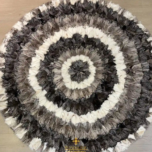 100% Genuine Tricolor Fluffy Round Fox Fur Rug