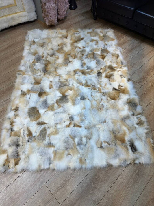 100% Natural Soft Shaggy Fox Fur Rug, Luxury Fluffy Handmade Fox Fur Area Rug