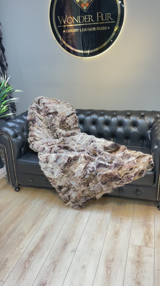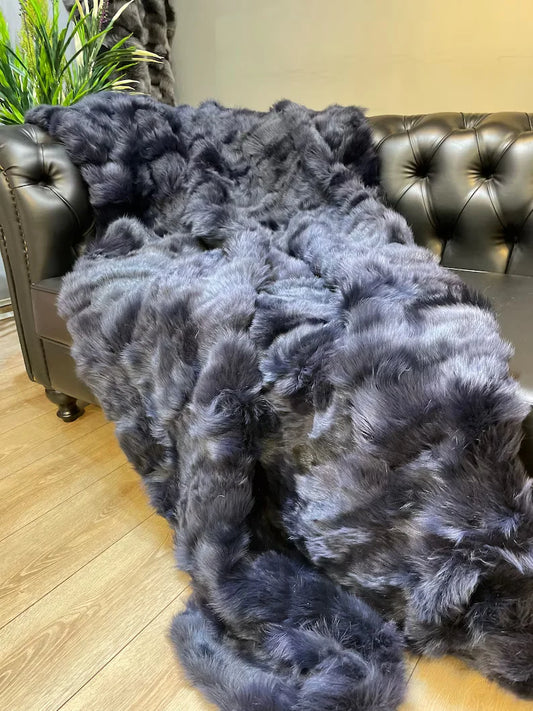 Luxury Sheepskin Natural Fur Blanket, Handmade Cozy Sofa Fur Blanket