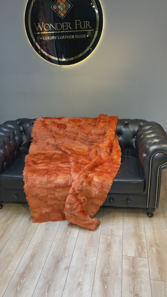 Orange Sheepskin Fur Fluffy Blanket, Elegant Natural Soft Fur Throw