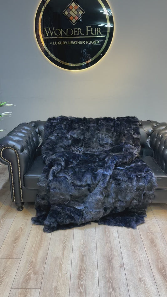 Genuine Navy Blue Throw King Size Blanket, Ultra Soft Natural Sheepskin Fur Throw