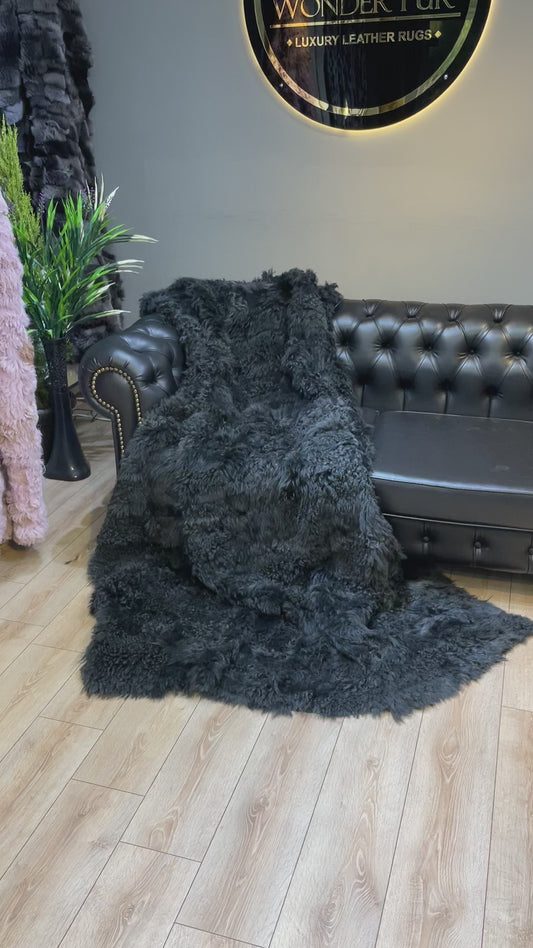 Genuine Leather Cozy Black Throw & Blanket, Sheepskin Fur Throw Shawl Blanket