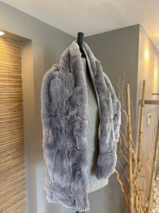 Genuine Grey Rabbit Fur Scarf | Luxury Real Fur Wrap for Winter