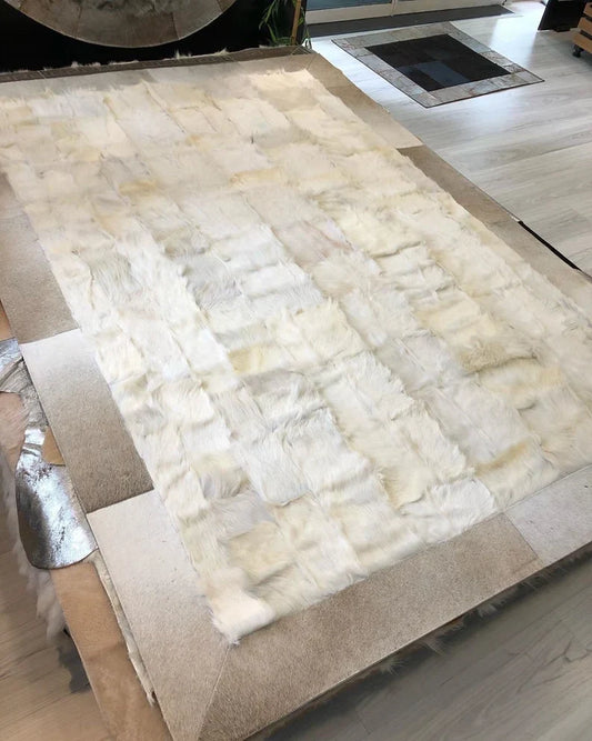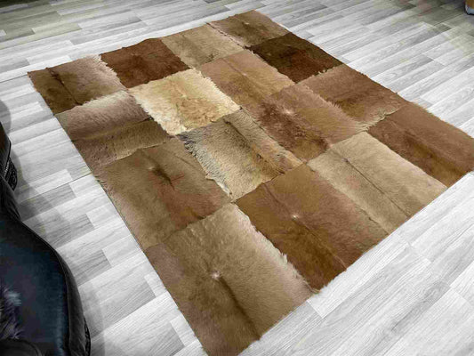 Natural Goatskin Patchwork Rug for Living Room, Handmade Elegance