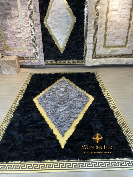 Original Handmade Black Gray And Gold Sheepskin Area Living Room Rug