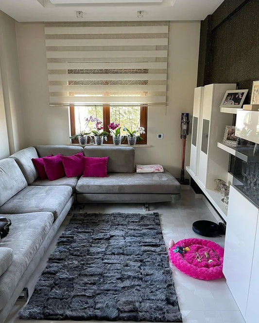 Luxury Handmade Gray White Natural Sheepskin 6x8 Bedroom Modern Carpet