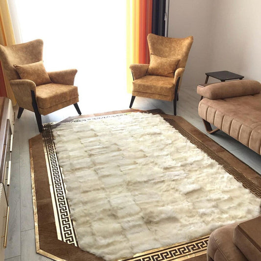 Handmade Custom Gray Natural Sheepskin Rug with Gold-Edged Creamy Rug