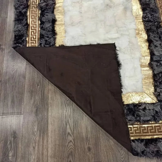 Unique Handmade Black Gold Real Sheepskin Soft Fluffy Living Room Rug