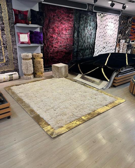 Black and Gold Sheepskin Area 9x12 Rug Luxury Soft Handmade Natural Sheepskin Carpet