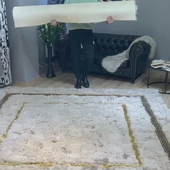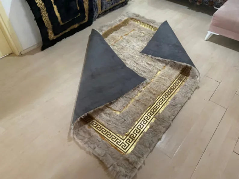 Beige Gold Natural Sheepskin Area Rug, Ultra Soft Fluffy Handmade Elegance