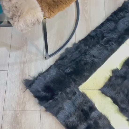 Black Gold Elegant Sheepskin Area Rug for Entrance, Natural Handmade Rug
