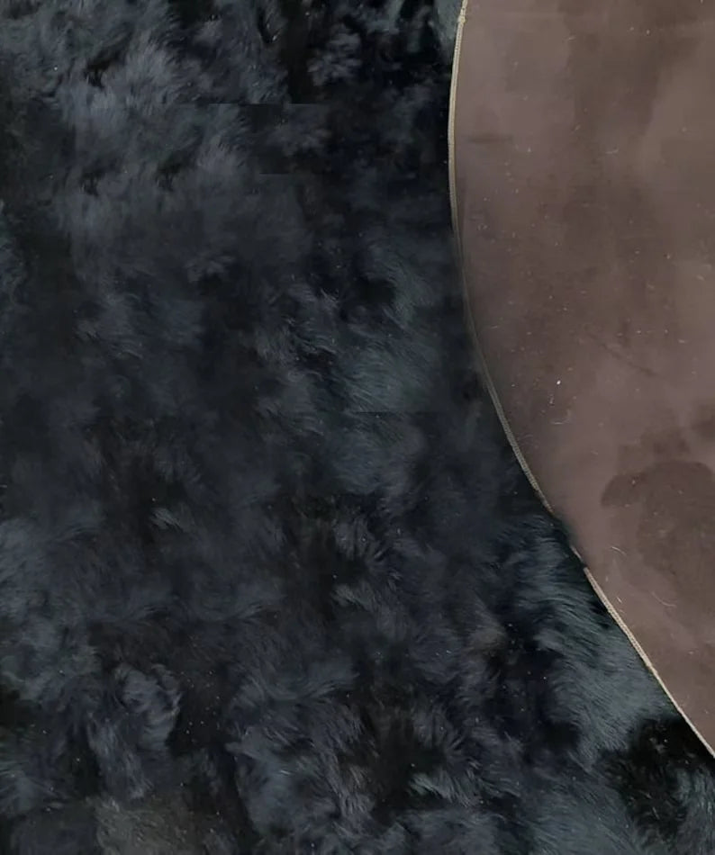 Black Gold Handmade Natural Sheepskin Area 7x10 Rug, Fluffy Black Sheepskin Soft Rug