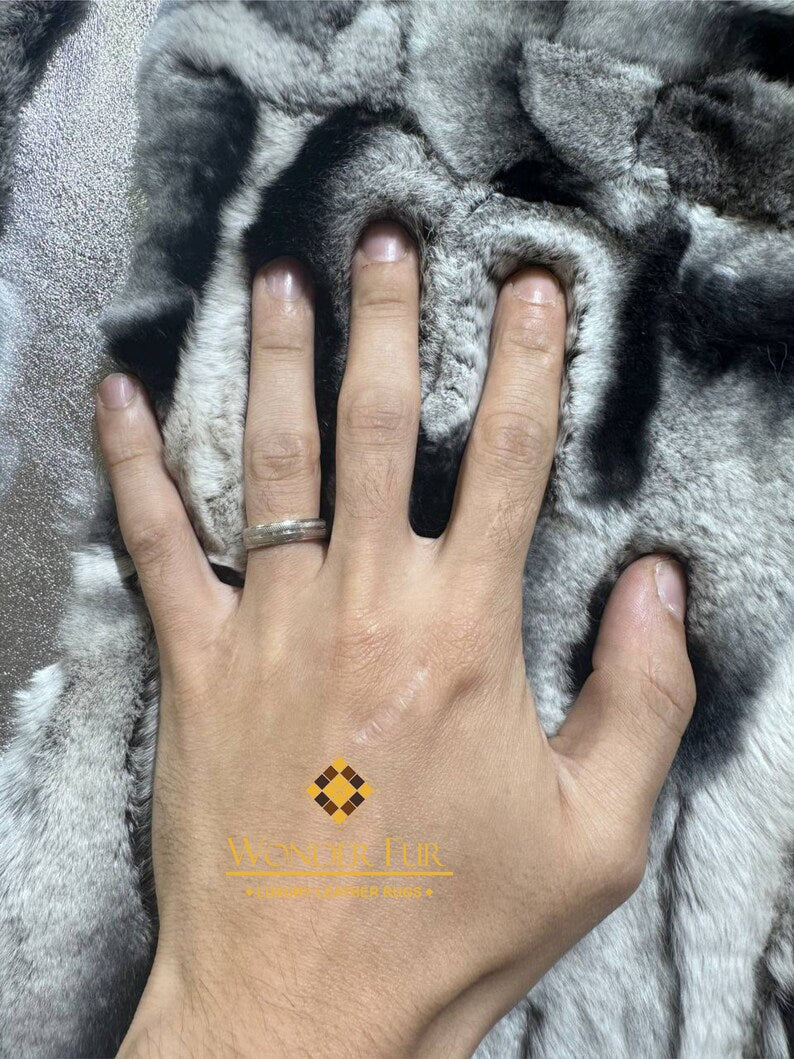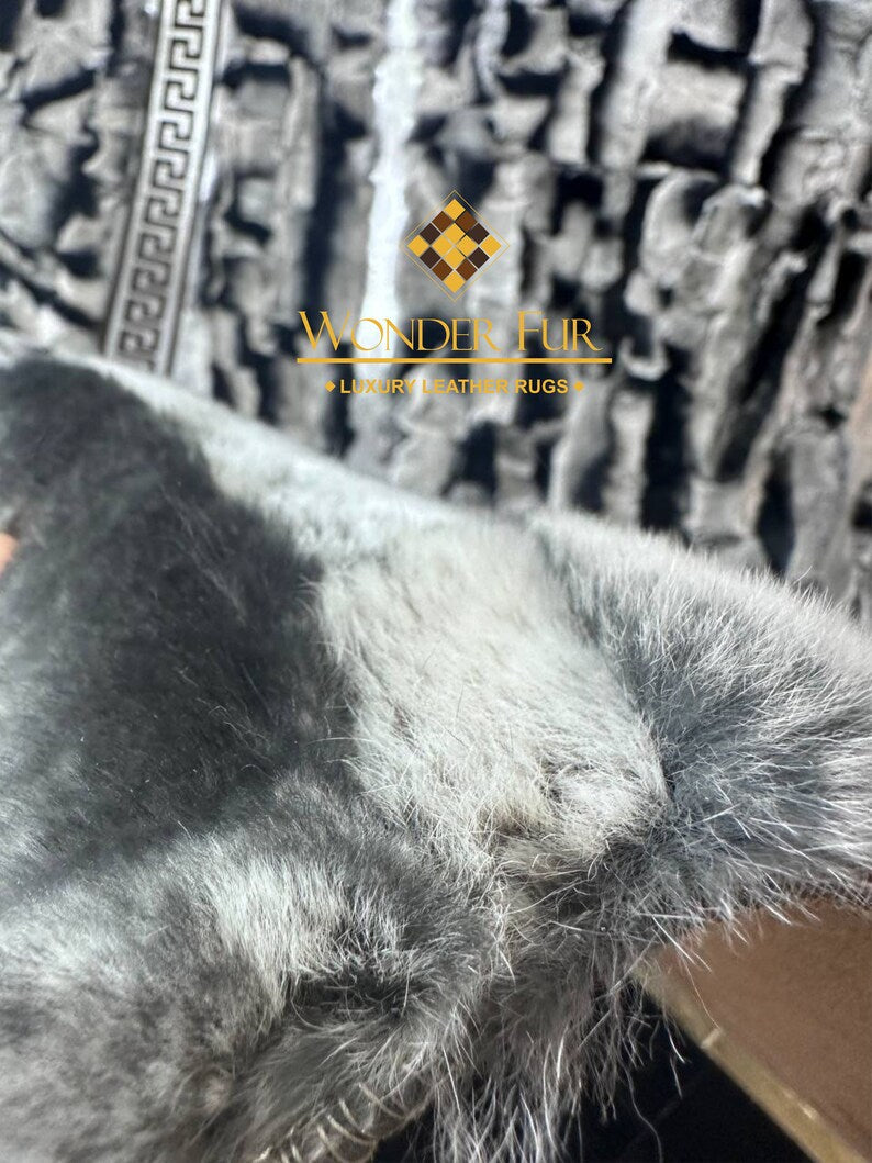 Black Gray Ultra Soft Natural Rabbit Fur Rug, Handamde Rex Area Rug