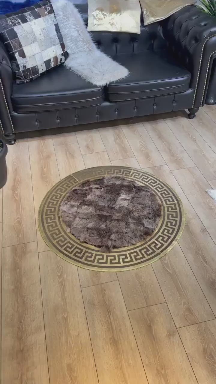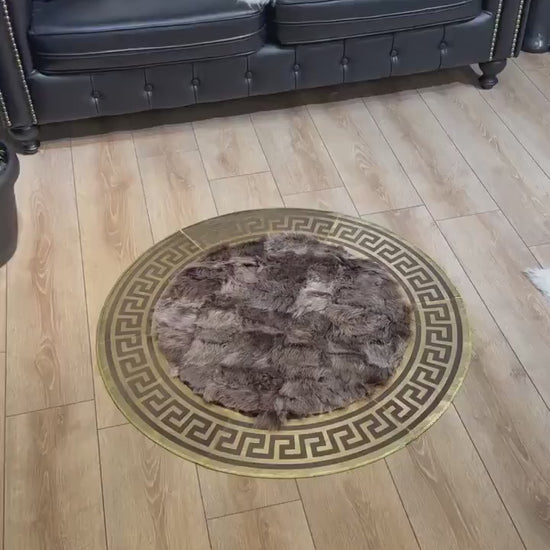 Brown Gold Luxury Natural Sheepskin Round Rug, Handmade Unique Soft Rug