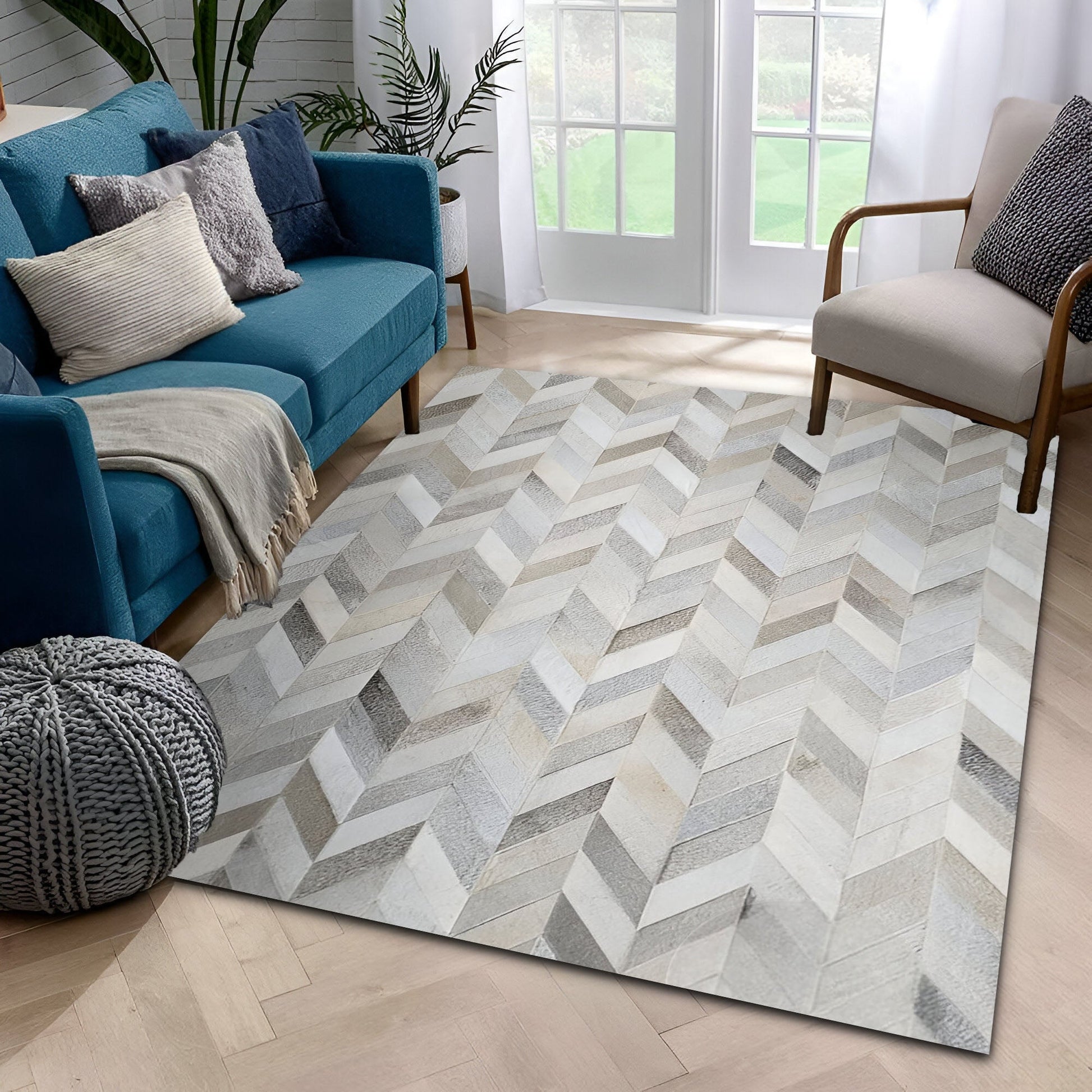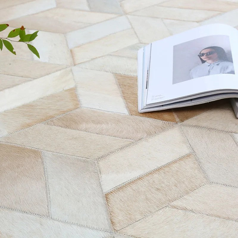 Custom Pattern 100% Genuine Cowhide Patchwork Area Rug, Handmade Elegance