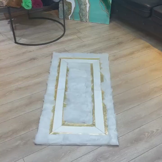Elegance White Gold Real Sheepskin Runner Rug for Hallway, Soft Shaggy Rug