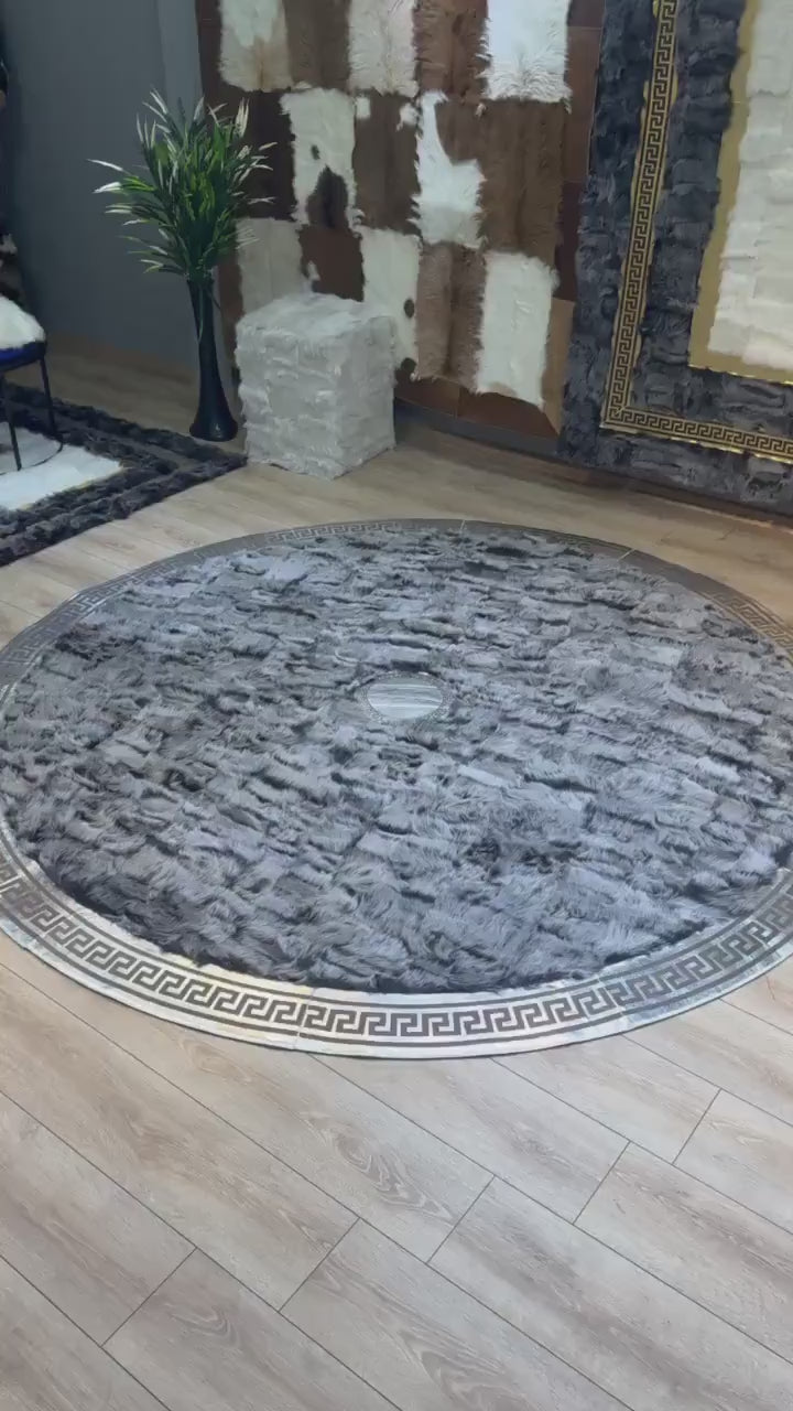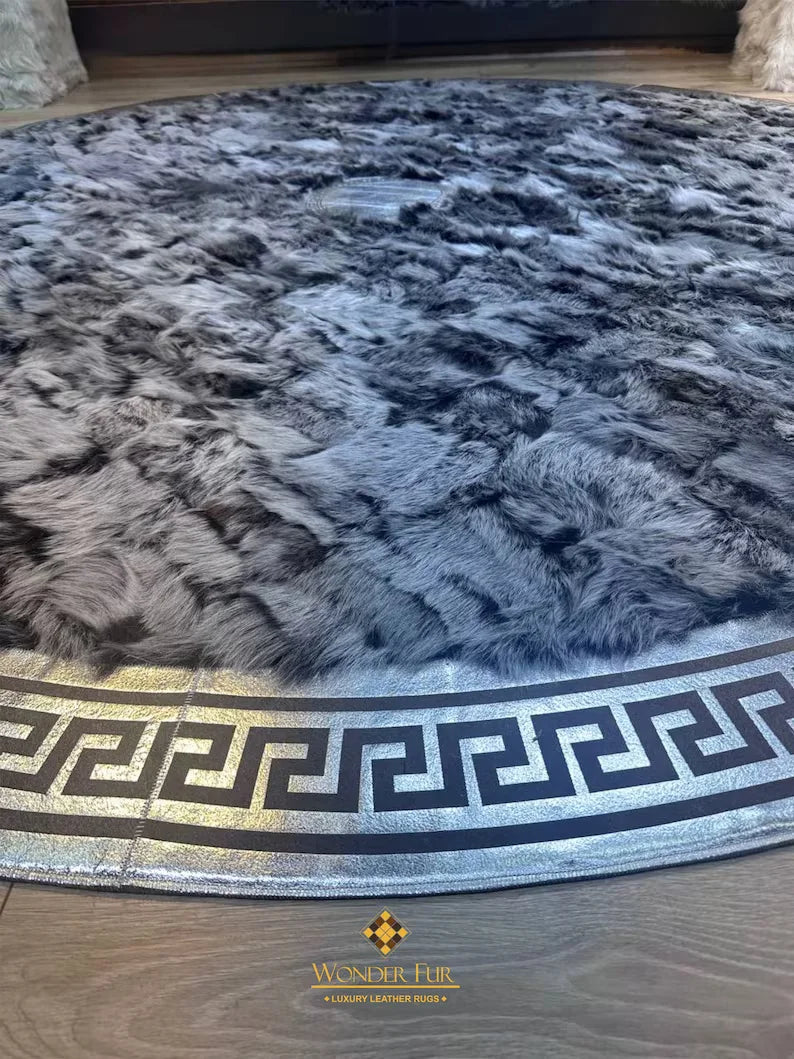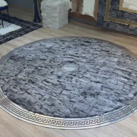 Gray Large 100% Genuine Sheepskin Round Rug, Handmade Soft Shaggy Area Rug