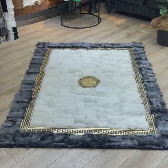Handmade Custom Gray Natural Sheepskin Rug with Gold-Edged Creamy Rug