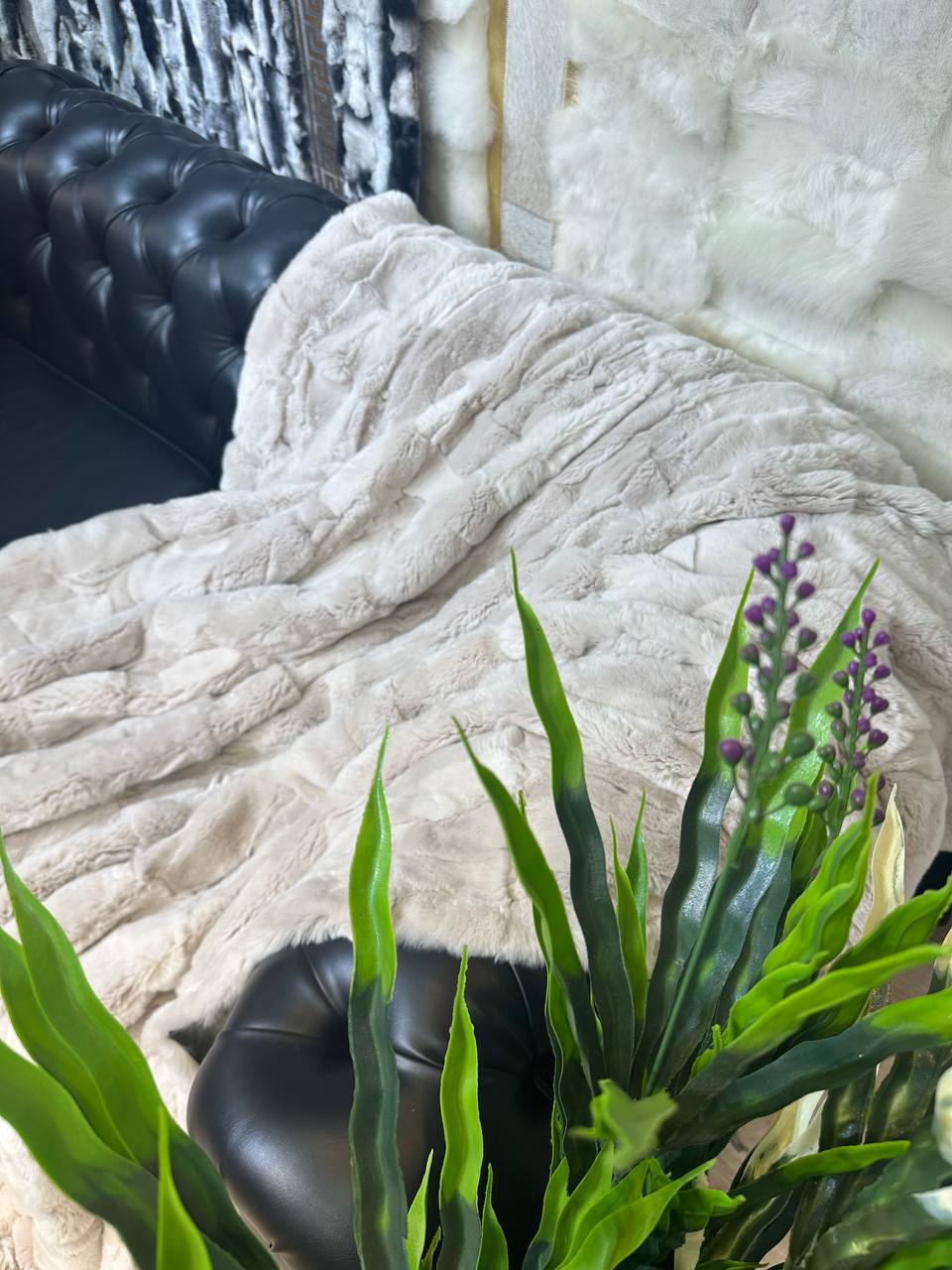 Our blankets are made by hand in our workshop from high-quality natural Rabbitskin.