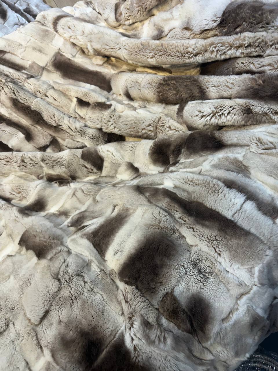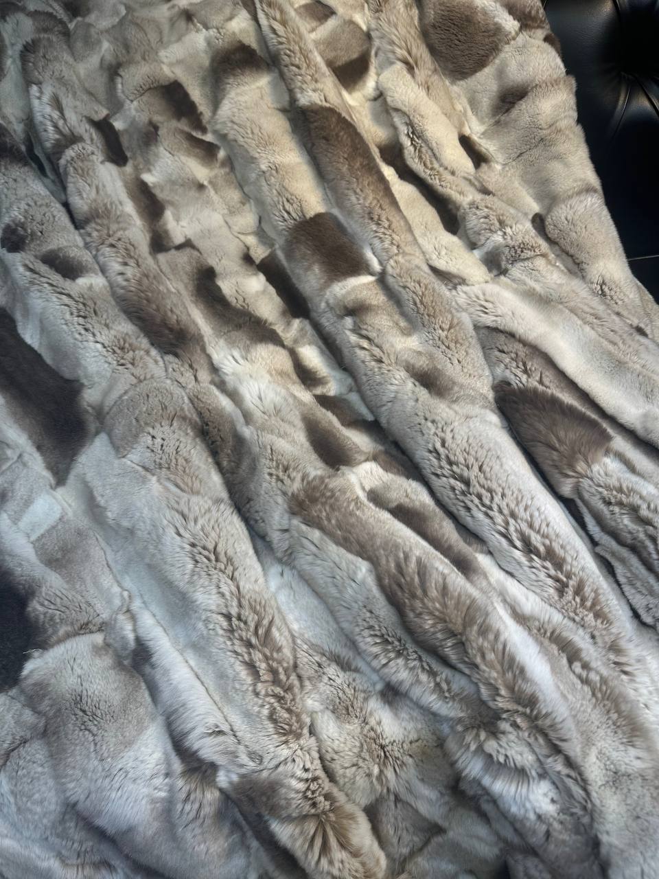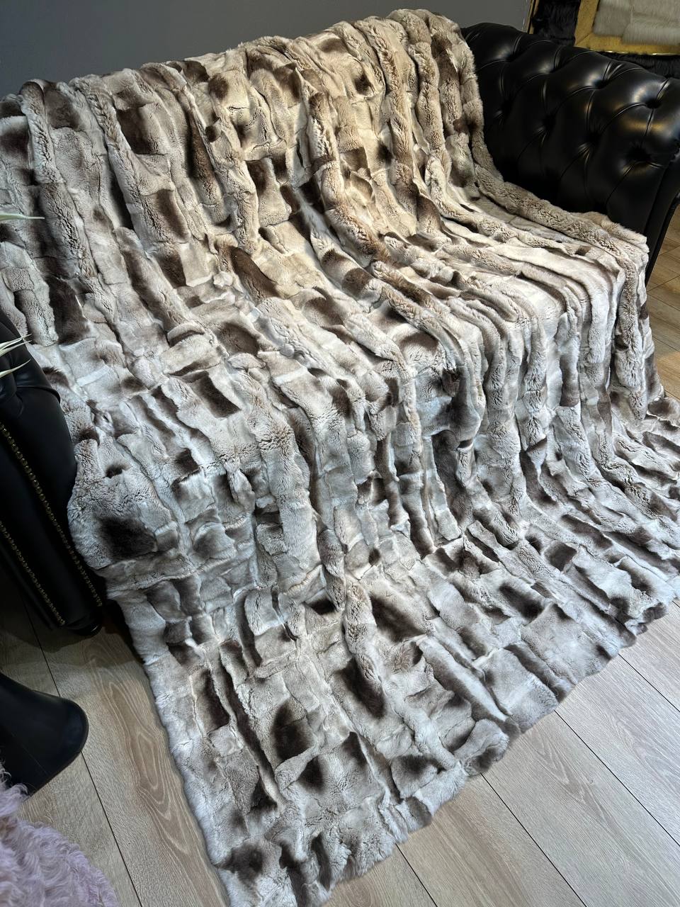 Luxurious Gray Brown Natural Real Rabbit Fur Blanket Throw , Personalized Handmade Fur Sofa Cover Bedspread, Throw Blanket, Fluffy Blanket