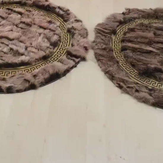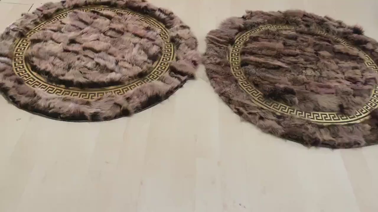 Handmade Soft Fluffy Gray Gold Original Sheepskin Non Slip Round Rug