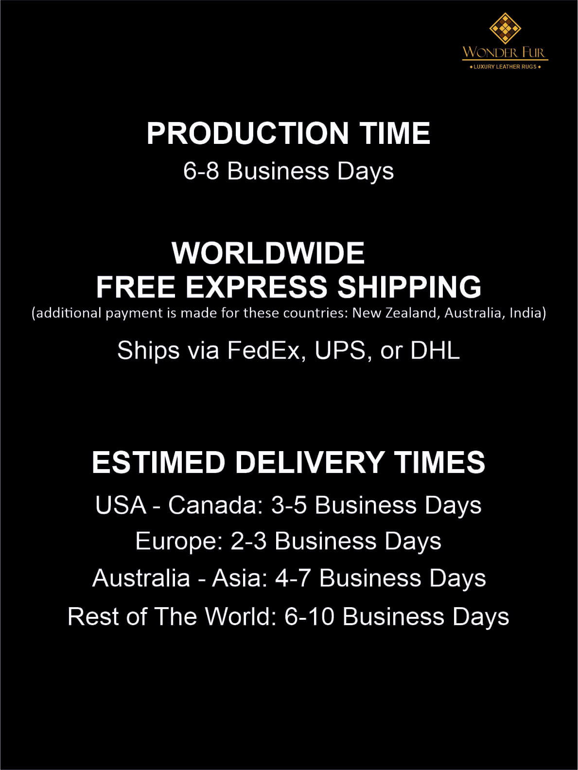 ✦ FREE Worldwide Express Shipping (FedEx or UPS, which takes 3-6 days for delivery)
