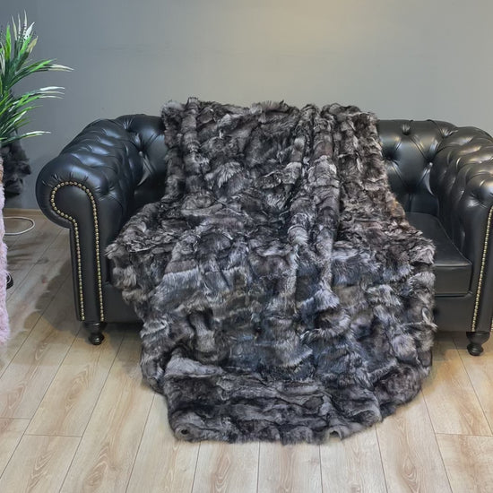 Luxury Genuine Leather Brown Sheepskin Fur Throw, Handmade Fur Blanket