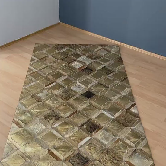 Luxury Gold Genuine Cowhide Area Rug, Handmade Gold Cow Leather Carpet for Home Decor
