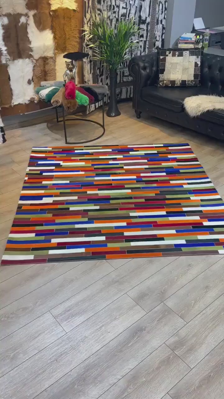 Our carpets are made by hand in our workshop from high-quality natural Cowhide.