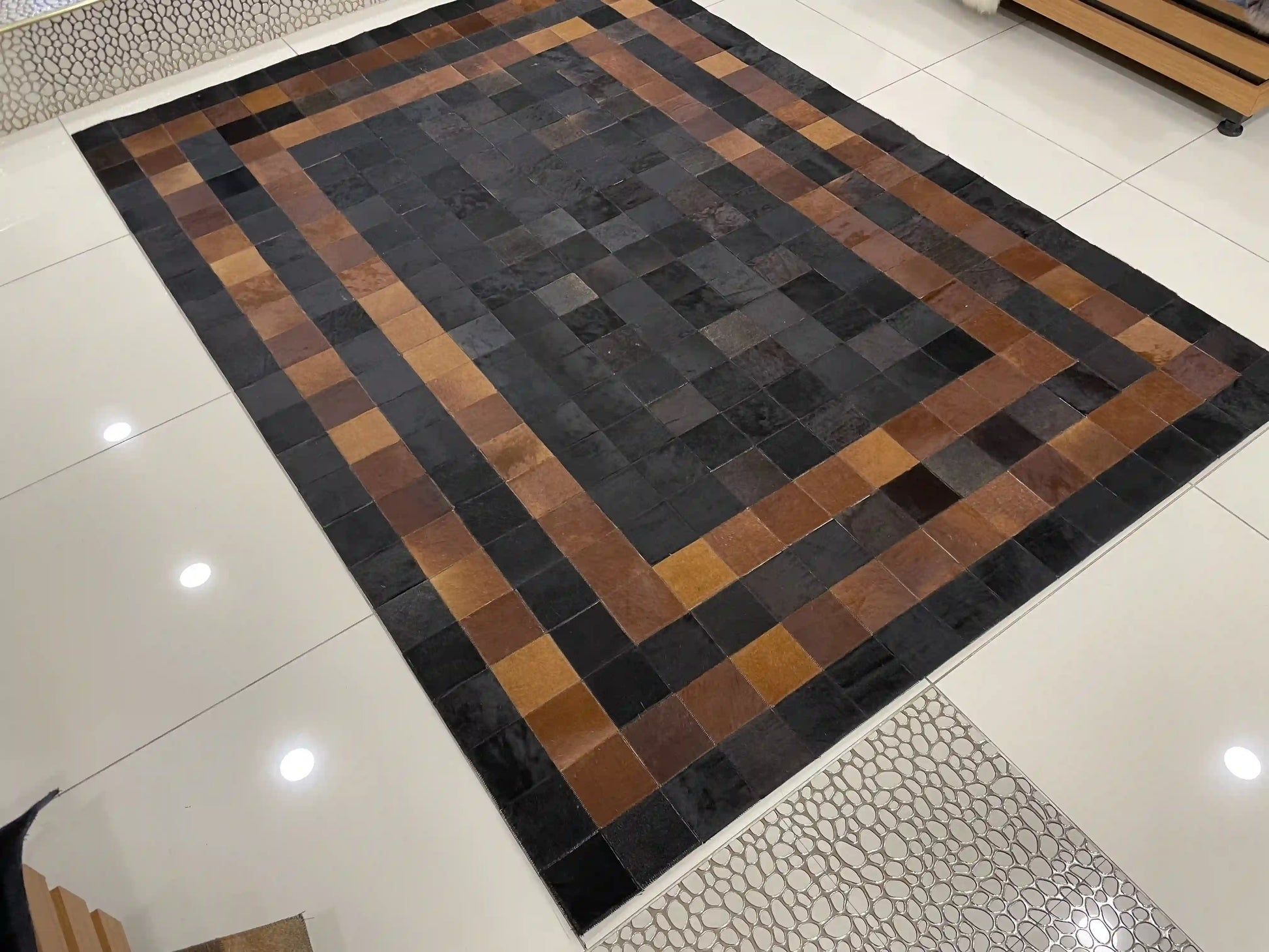 Our carpets are made by hand in our workshop from high-quality natural Cowhide.