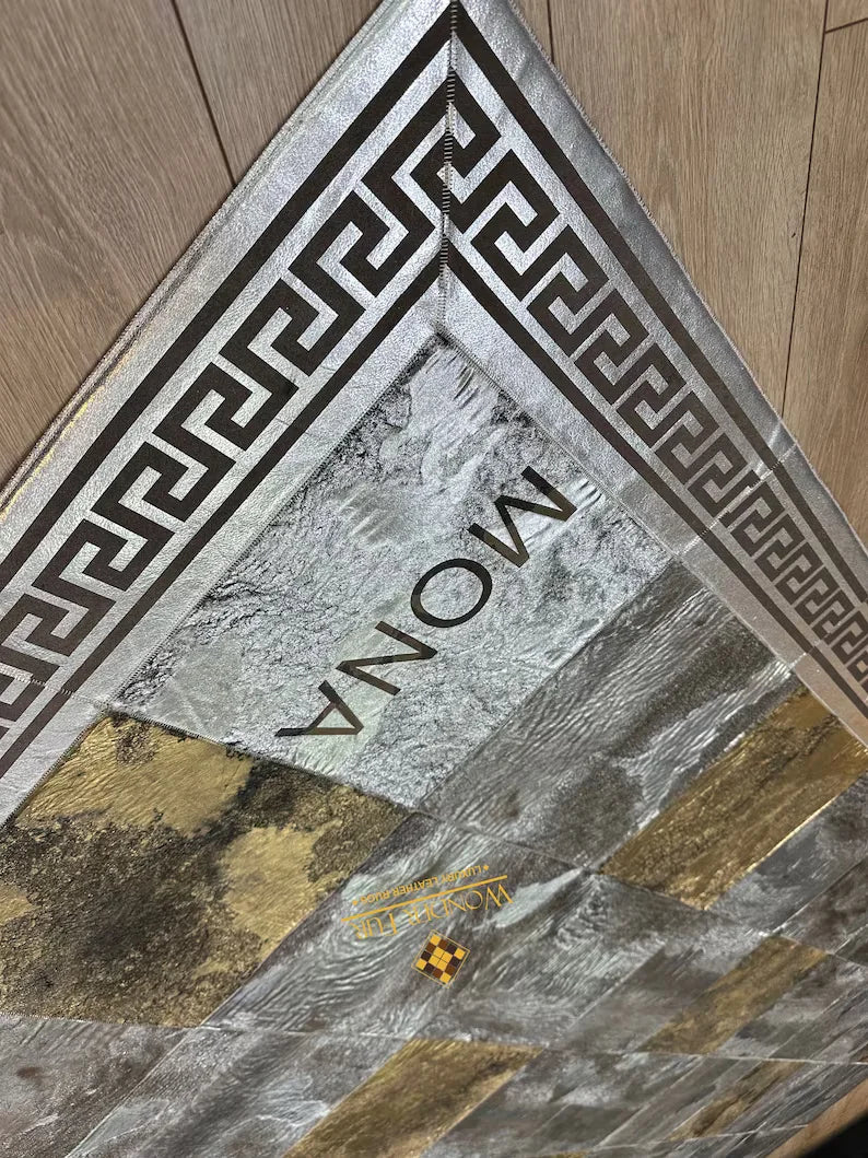 Silver and Gold Natural Sheepskin Area Rug, Unique Handmade Rug for Bedroom