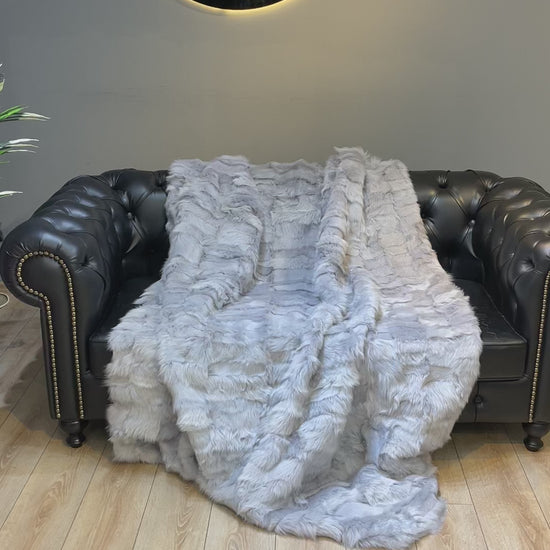 Silver Natural Fur Shaggy Blanket, Real Fur Sheepskin Cozy Throw